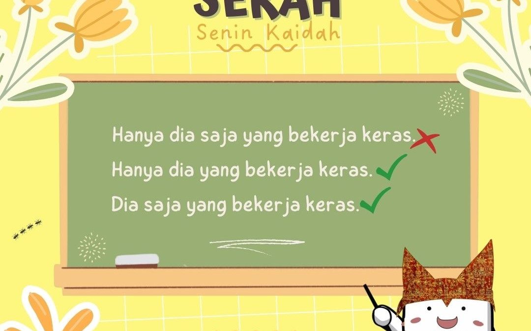 Sahabat Bahasa, kerap kita jumpai penulisan kata “hanya “ yang diikuti dengan “saja”. Sebenarnya, jika kata “hanya” sudah digunakan, tidak perlu diikuti oleh “saja” (begitu pula sebaliknya). Jadi Sahabat Bahasa, pilih salah satu saja supaya kalimat yang kita ucapkan/tulis tidak lewah (berlebihan).